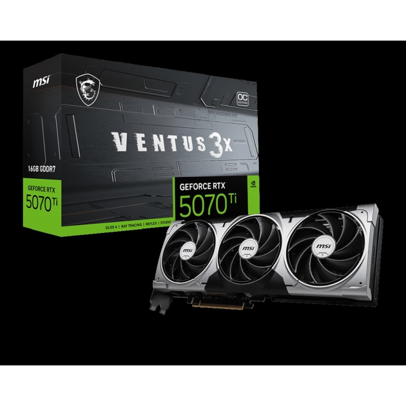 | RTX 5070 Ti 16G VENTUS 3X OC | NV RTX 5070 Ti (8960 CUDA/ 2482MHz) / 16GB GDDR7 (256bit / 28Gbps) / 1*HDMI + 3*DP / TORX Fan 5.0 / 3Years warranty |