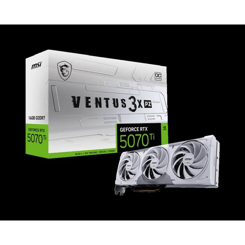 | RTX 5070 Ti 16G VENTUS 3X PZ OC | NV RTX 5070 Ti (8960 CUDA/ 2497MHz) / 16GB GDDR7 (256bit / 28Gbps) / 1*HDMI + 3*DP / TORX Fan 5.0 / 3Years warranty |