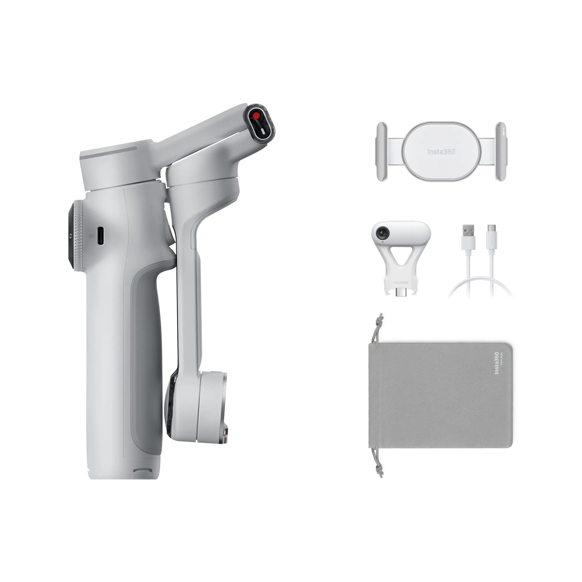 Includes 1x Insta360 Flow 2 Pro, 1x Magnetic Phone Clamp, 1x USB-C to USB-A Charge Cable,1x Protective Pouch.