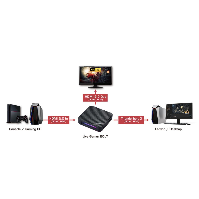 • Max. Pass-Through Resolution: 2160p60 HDR /1440p144/ 1080p240