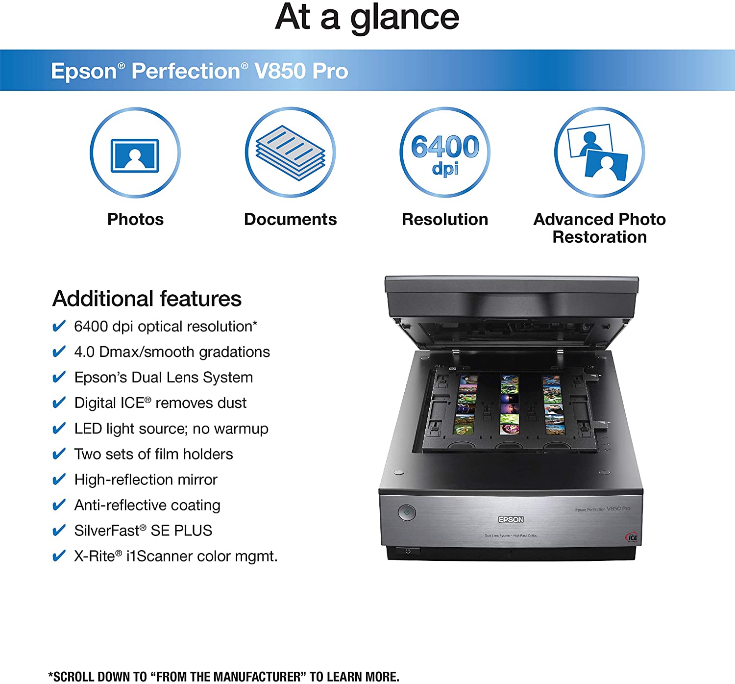 Scanner Type: Flatbed Color Image ScannerOptical Resolution: 4800 dpiHardware Resolution: 4800 x 4800 dpiColor Bit Depth: 48-bits per pixel internal / 24-bits per pixel externalOptical Sensor: CIS (Contact Image Sensor)Effective Pixels: 40800 x 56160 pixels (4800 dpi)Grayscale Bit Depth: 16-bits per pixel internal / 8-bits per pixel externalOptical Density: CIS (Contact Image Sensor)Maximum Scan Area: Flatbed 8.5" x 11.7"Light Source: Three-color RGB LEDsScanning Speed: A4 B&W 300 dpi approximately 10 seconds (via USB 2.0)