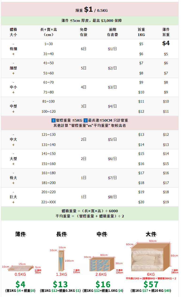 | 續重價格 | 12 | 12 | |