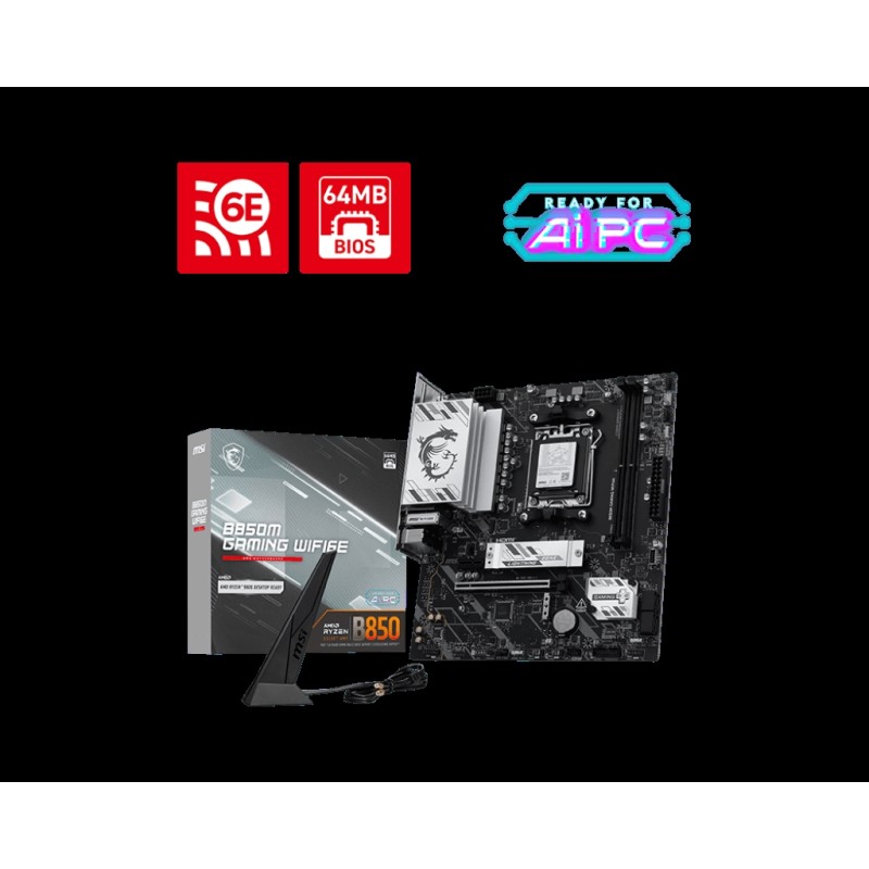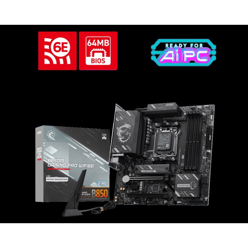 | B850M GAMING WIFI6E | Socket AM5 / B850 / 2*DDR5 MAX.128GB / 1*PCI-E x16 / 2*M.2 / 4*SATAIII / 6*USB 2.0 / 5*USB Type A / 2*USB Type C / 2.5Gbps LAN + Wi-Fi 6E / MATX / 3Years Warranty |