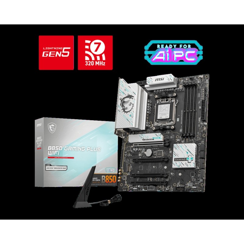 | B850M GAMING WIFI | Socket AM5 / B850 / 2*DDR5 MAX.128GB / 2*PCI-E x16 / 2*M.2 / 4*SATAIII / 6*USB 2.0 / 5*USB Type A / 2*USB Type C / 5Gbps LAN + Wi-Fi 7 / MATX / 3Years Warranty |