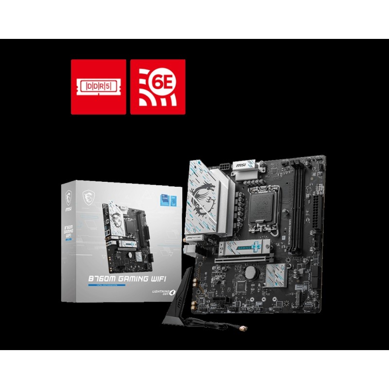 | B760M GAMING WIFI | Socket 1700 / B760 / 2*DDR5 MAX. 128GB / 1*PCI-E x16 / 2*M.2 / 4*SATA 6G / 6*USB 2.0 / 6*USB Type A / 2.5G Lan + WiFi 6E / MATX / 3Years Warranty |