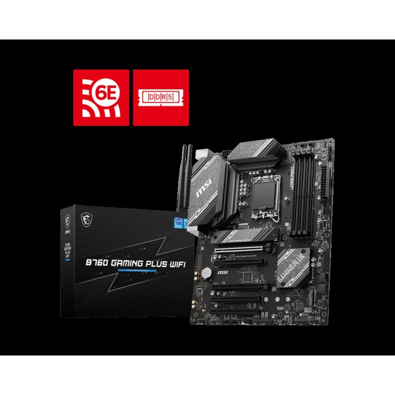 | B760M GAMING PLUS WIFI | Socket 1700 / B760 / 4*DDR5 MAX. 256GB / 2*PCI-E x16 / 2*M.2 / 4*SATA 6G / 6*USB 2.0 / 8*USB Type A / 1*USB Type C / 2.5G Lan + WiFi 6E / MATX / 3Years Warranty |