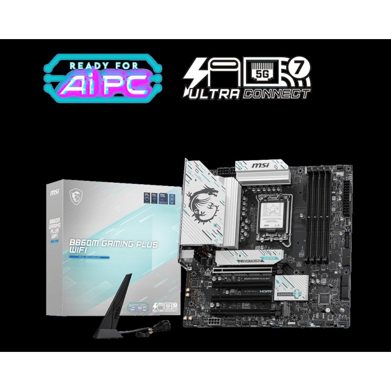 | B860M GAMING PLUS WIFI | Socket 1851 / B860 / 4*DDR5 MAX. 256GB / 4*PCI-E x16 / 3*M.2 / 4*SATA 6G / 6*USB 2.0 / 7*USB Type A / 2*USB Type C / 5G Lan + Wi-Fi 7 / MATX / 3Years Warranty |