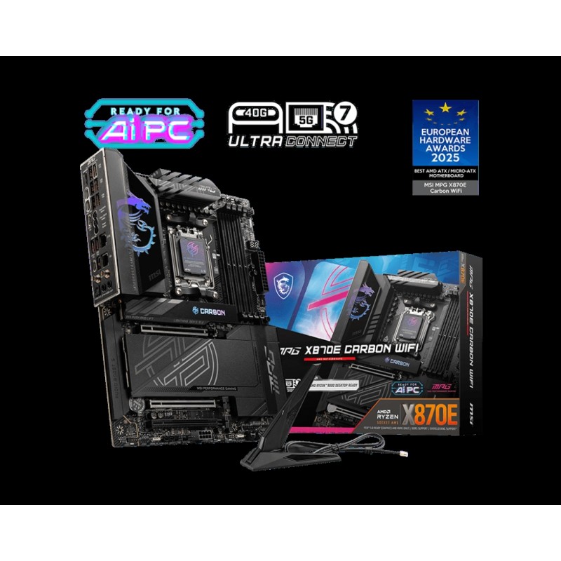 Socket AM5 / AMD X870E / 4*DDR5 MAX.256GB / 3*PCI-E x16 / 4*M.2 / 4*SATA 6G / 4*USB 2.0 / 13*USB Type A / 5*USB Type C / 2.5Gbps LAN + 5Gbps LAN + Wi-Fi 7 / ATX / 3Years Warranty